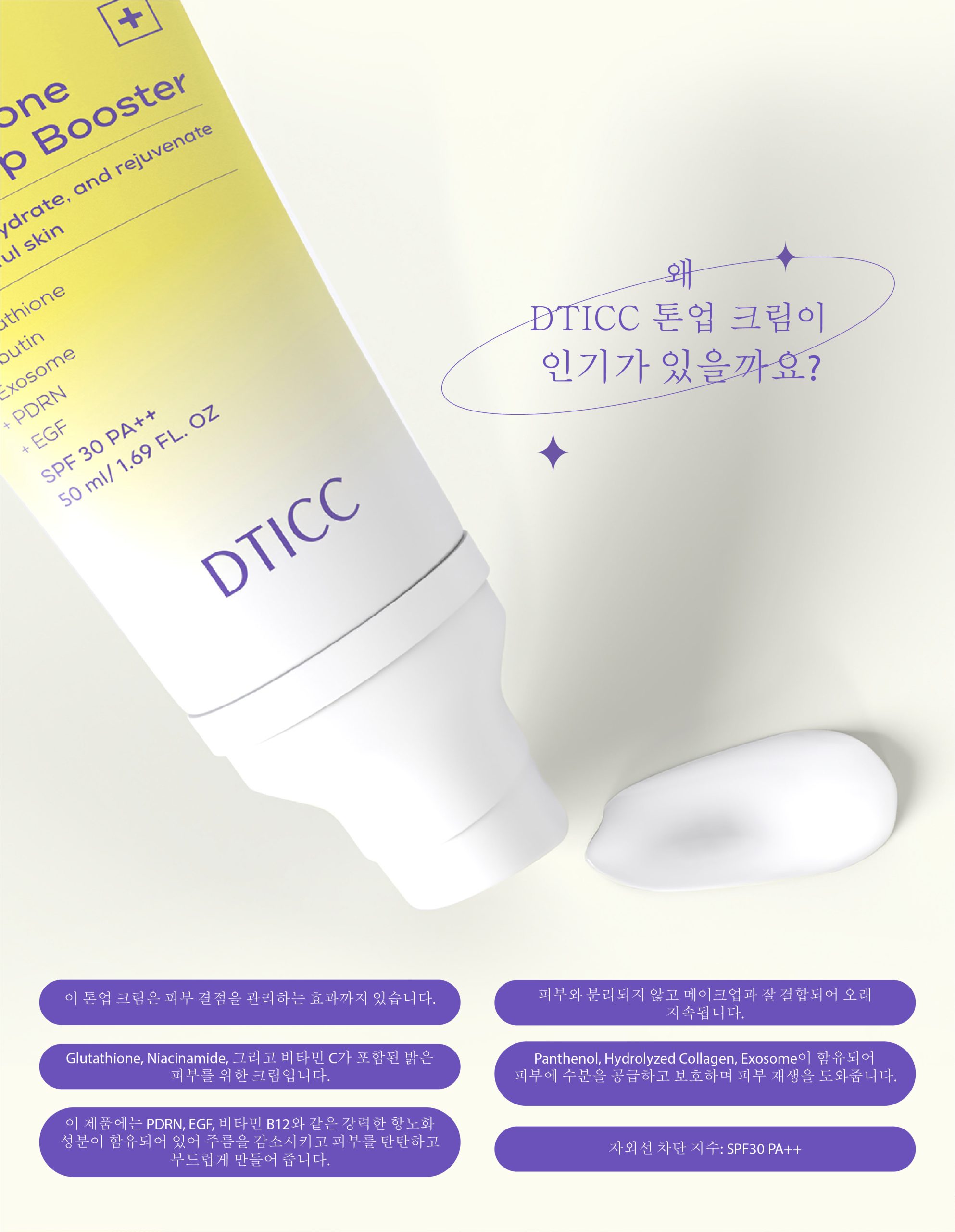 자외선으로부터 보호: SPF30 PA++가 자외선으로부터 피부를 보호하고 조기 노화를 예방합니다.